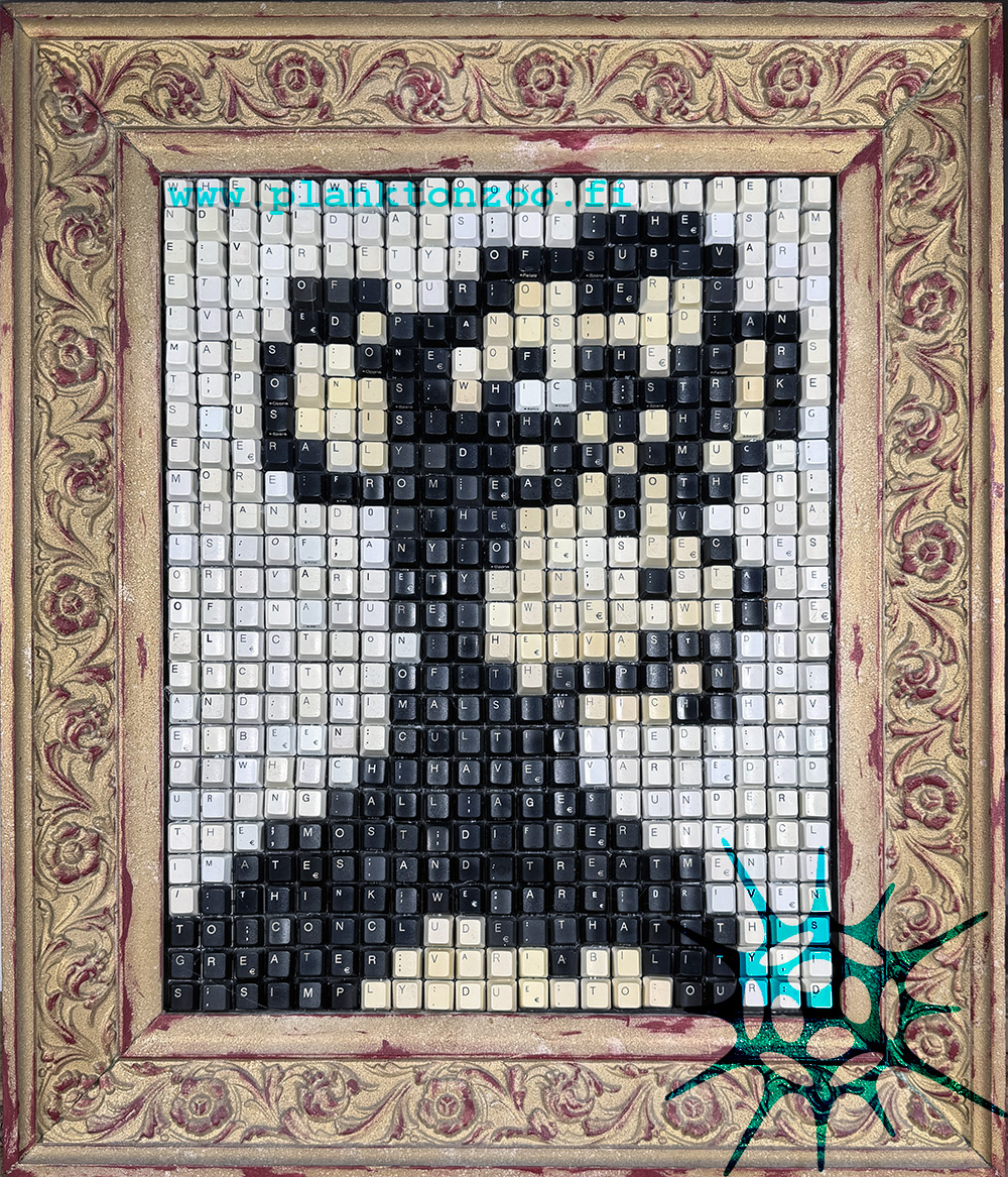 Mixed technique, keyboard keys and styrofoam with quote from ‘The Origin of Species’ by Charles Darwin running through the artwork.